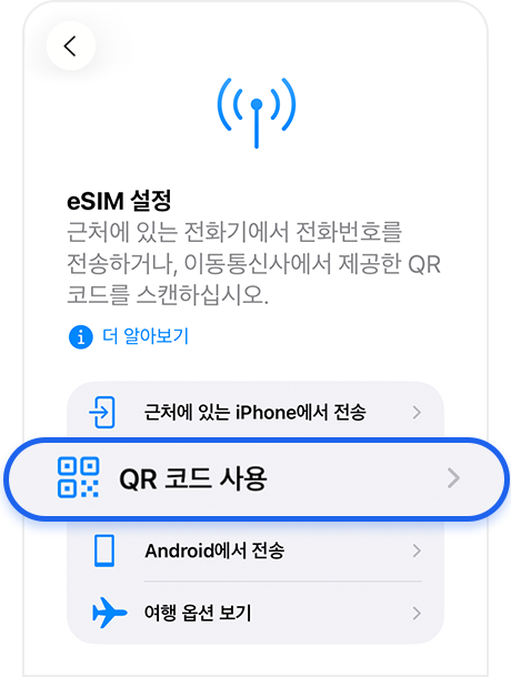 ✅ APP : 나의 eSIM > QR 보기 > QR코드 아래 ‘바로 설치’ 선택