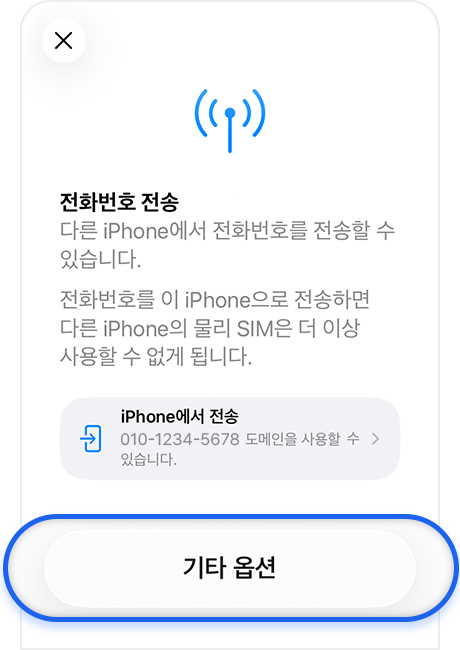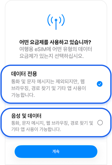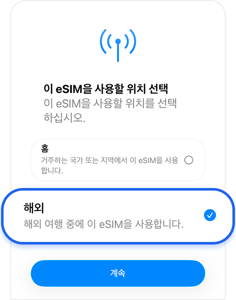 eSIM 활성화 준비 화면 노출 시, '계속' 선택